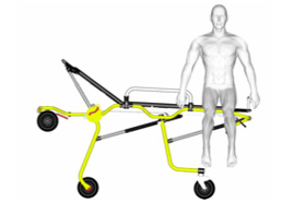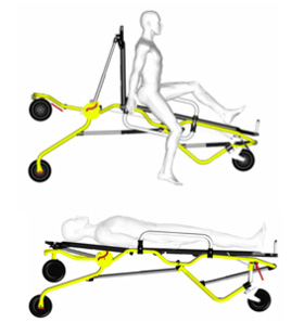 Gerekirse, Cross dar alanlarda veya küçük asansörlerde iyi idare edilebilmesini garanti altına almak için kısaltılabilir. Ön taraftaki tekerlek sistemi yukarı doğru dönebilir (otomatik blokaj sistemi) sedye duvara veya aşağı doğru çarptığı zaman hastayı korumak için tampon görevi görür.